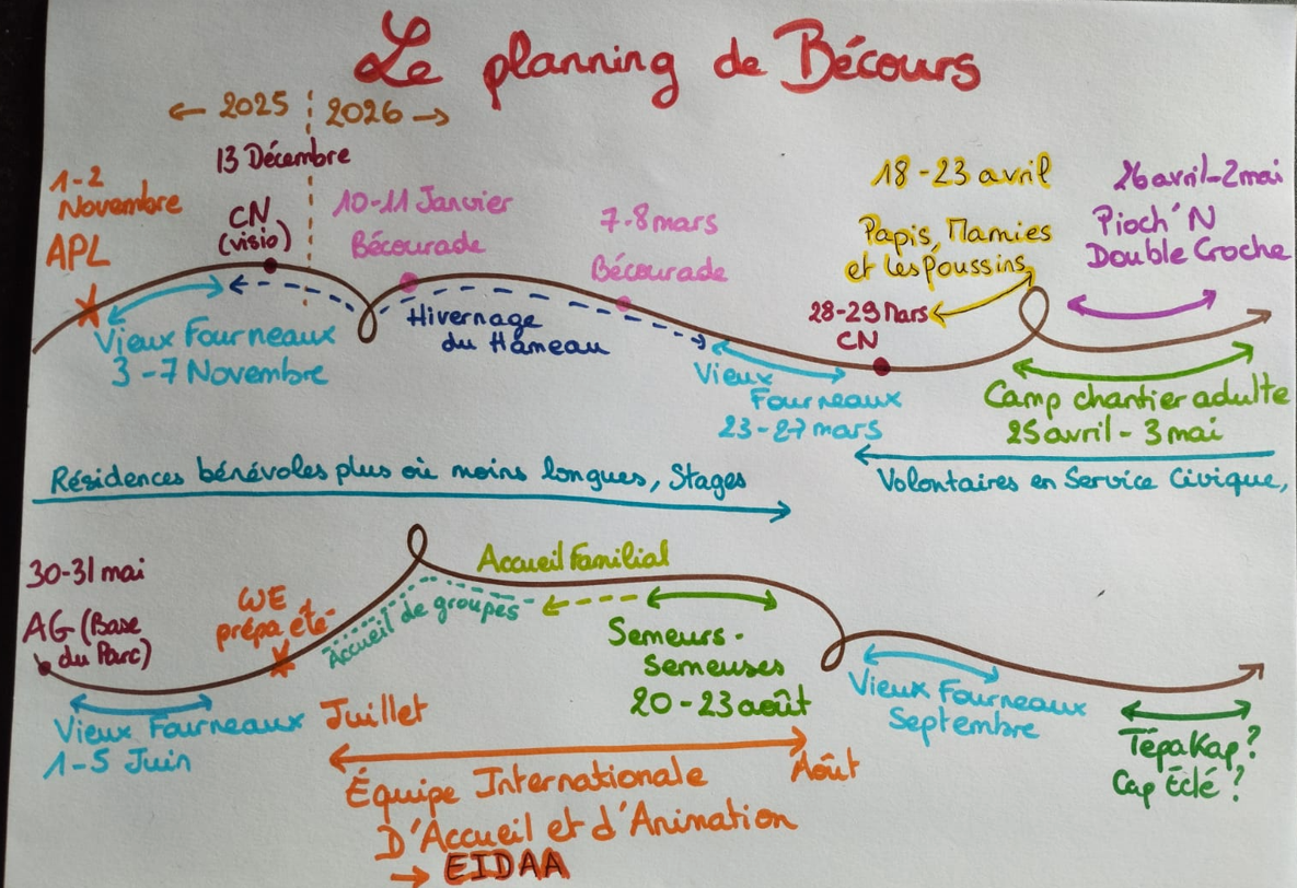 L’année 2025 a été florissante, pour autant la Collégiale souhaite prioriser l’accueil de groupes de l’association et du scoutisme, français ou international plutôt que de gros évènements adultes indépendants. La stabilité économique attendue de Bécours dépend donc de son utilisation régulière par les différents échelons de l’association. Si dans les paroles, l’association reconnaît Bécours comme centre ressources, dans les faits, les énergies ne sont pas encore alignées pour voir l’organisation de plus d’événements nationaux, par exemple. Nous souhaitons réaffirmer que Bécours est un appui à l’organisation d’évènements écléx, nationaux, régionaux ou locaux. Le Hameau a l’espace, les ressources logistiques, et ses bénévoles ont des compétences qui ont été mobilisées ces derniers temps sur des évènements nationaux (Ainergie, Cap, Grand Bivouac, camp d’accompagnement de Midi Pyrénées).