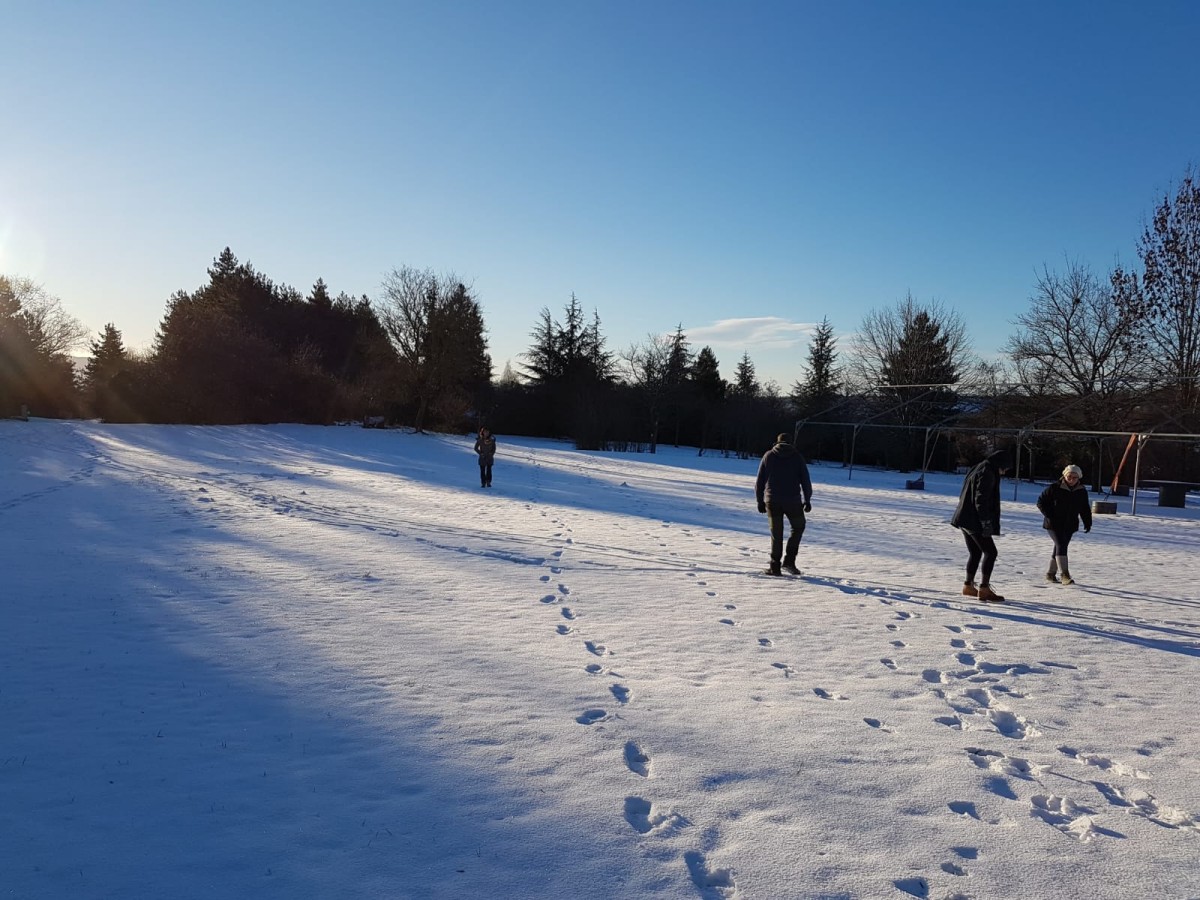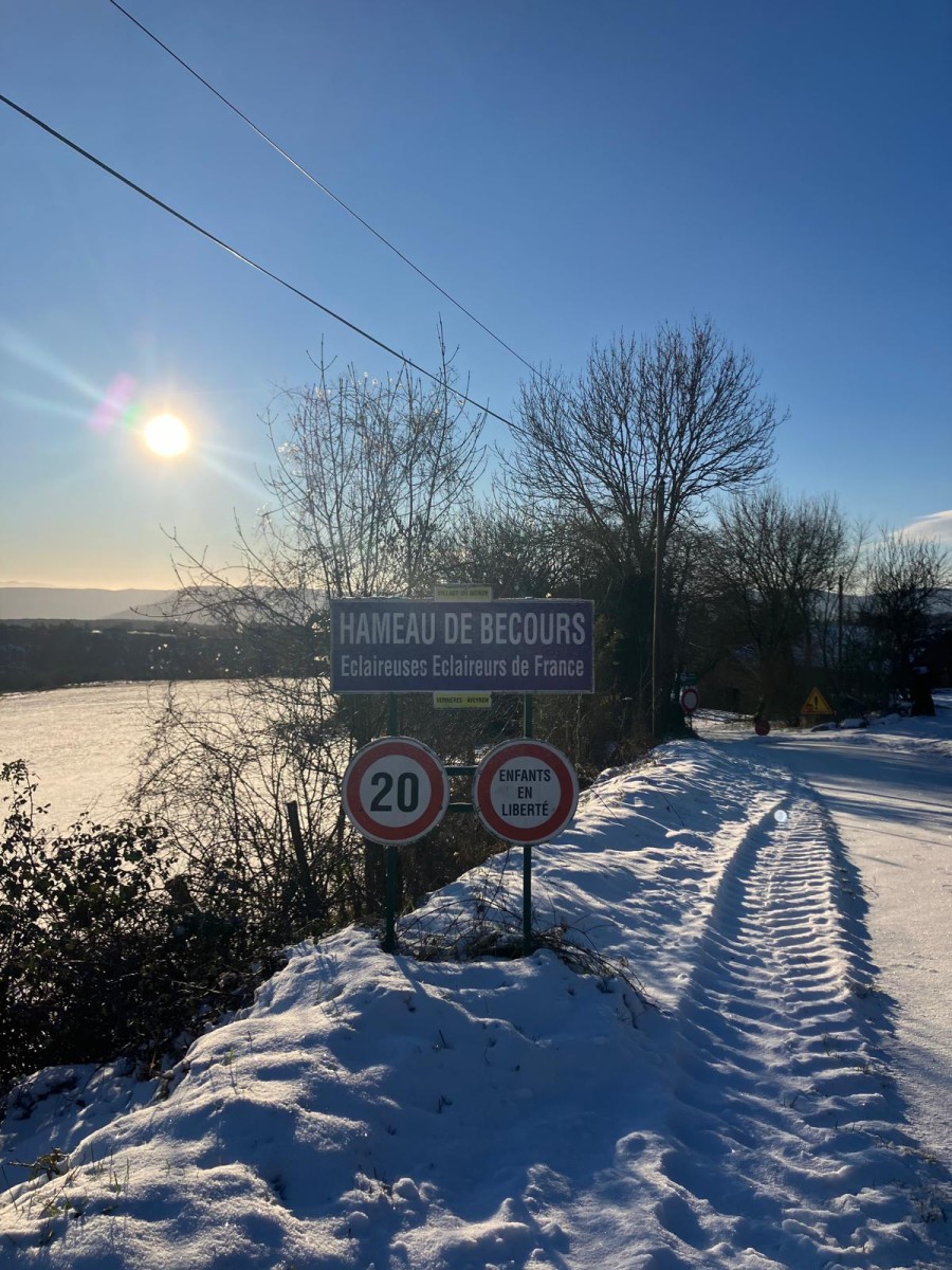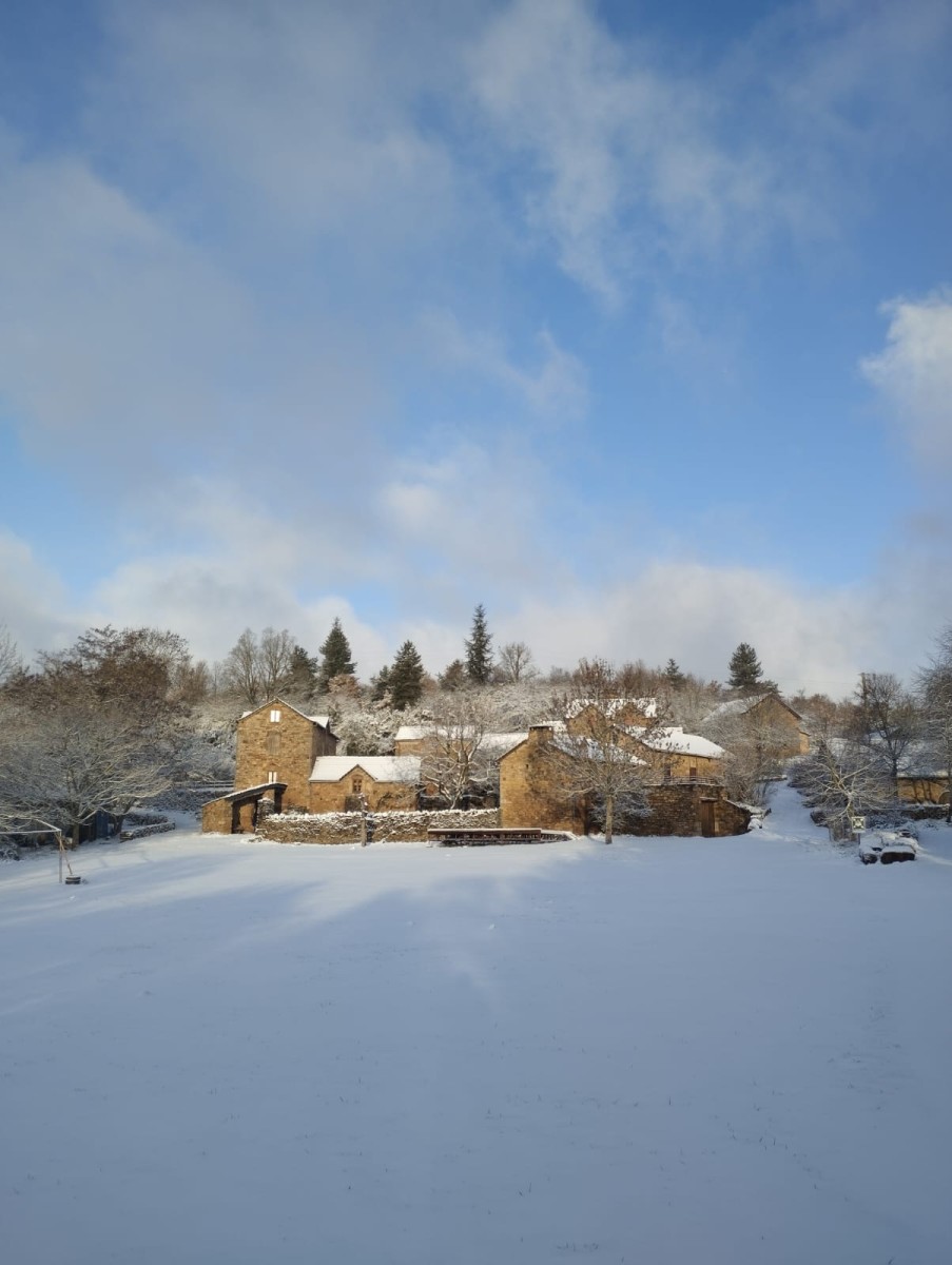 Le Samedi matin, nous nous sommes réveillé·es sous la neige, et sous le soleil ! Un spectacle magnifique qui nous a bien motivé pour aller faire le tour du terrain, noter les nouvelles choses, les travaux à continuer, et ceux à démarrer.